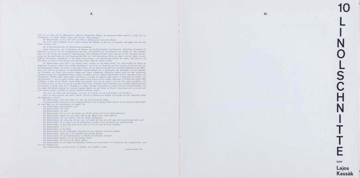 10 db. linometszet + 1db. szitanyomat Carl Laszlo, Basel kiadásában, komplett mappában. Első kiadás, jelezve laponként jobbra lent: Kassák
